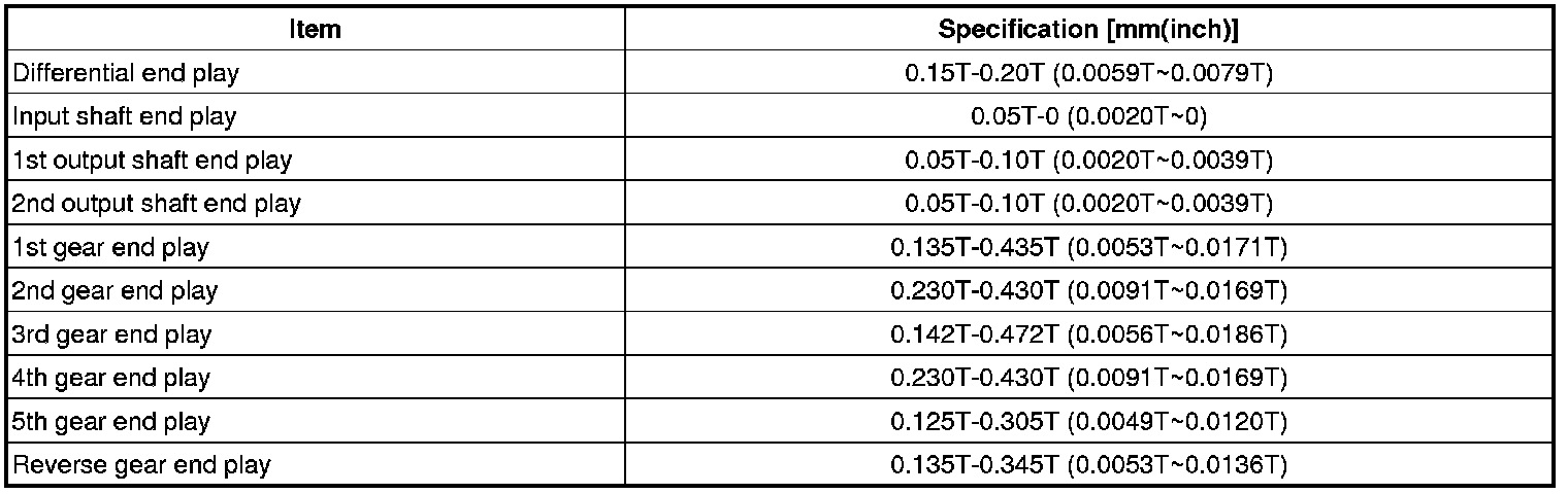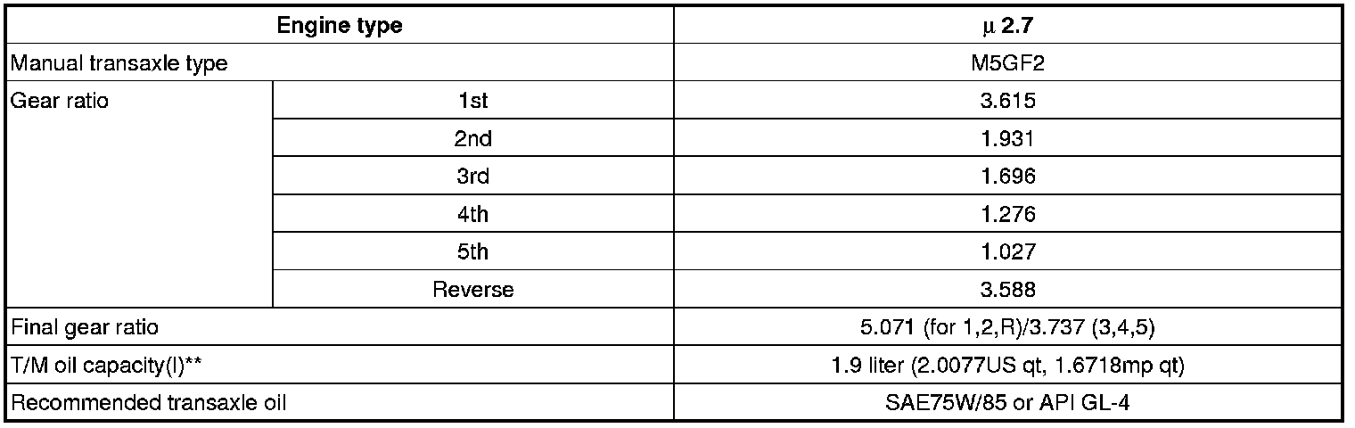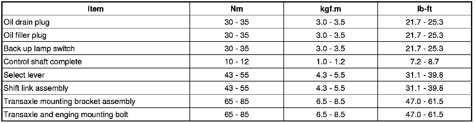 ** The quantity in the chart above is for the reference. The actual filling quantity of the automatic transaxle fluid must be set according to 'INSPECTION' or 'REPLACEMENT' procedure of the automatic transaxle fluid.