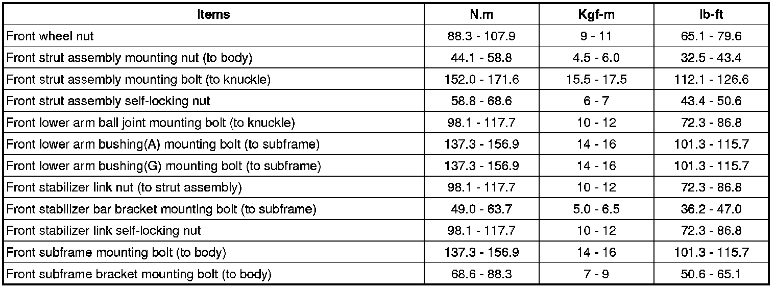 Tightening Torques