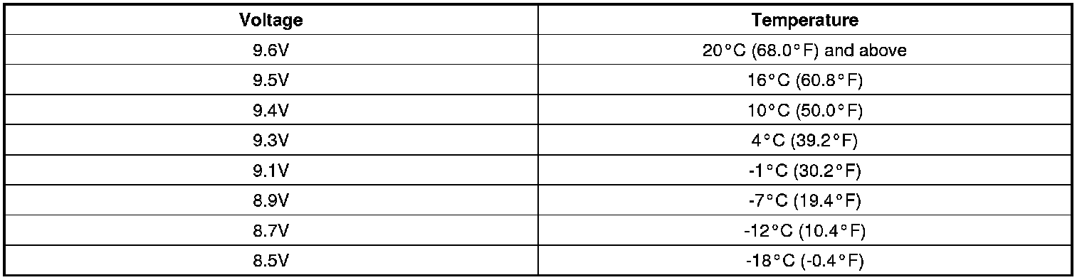 - If the voltage is less than shown in the table, replace the battery.