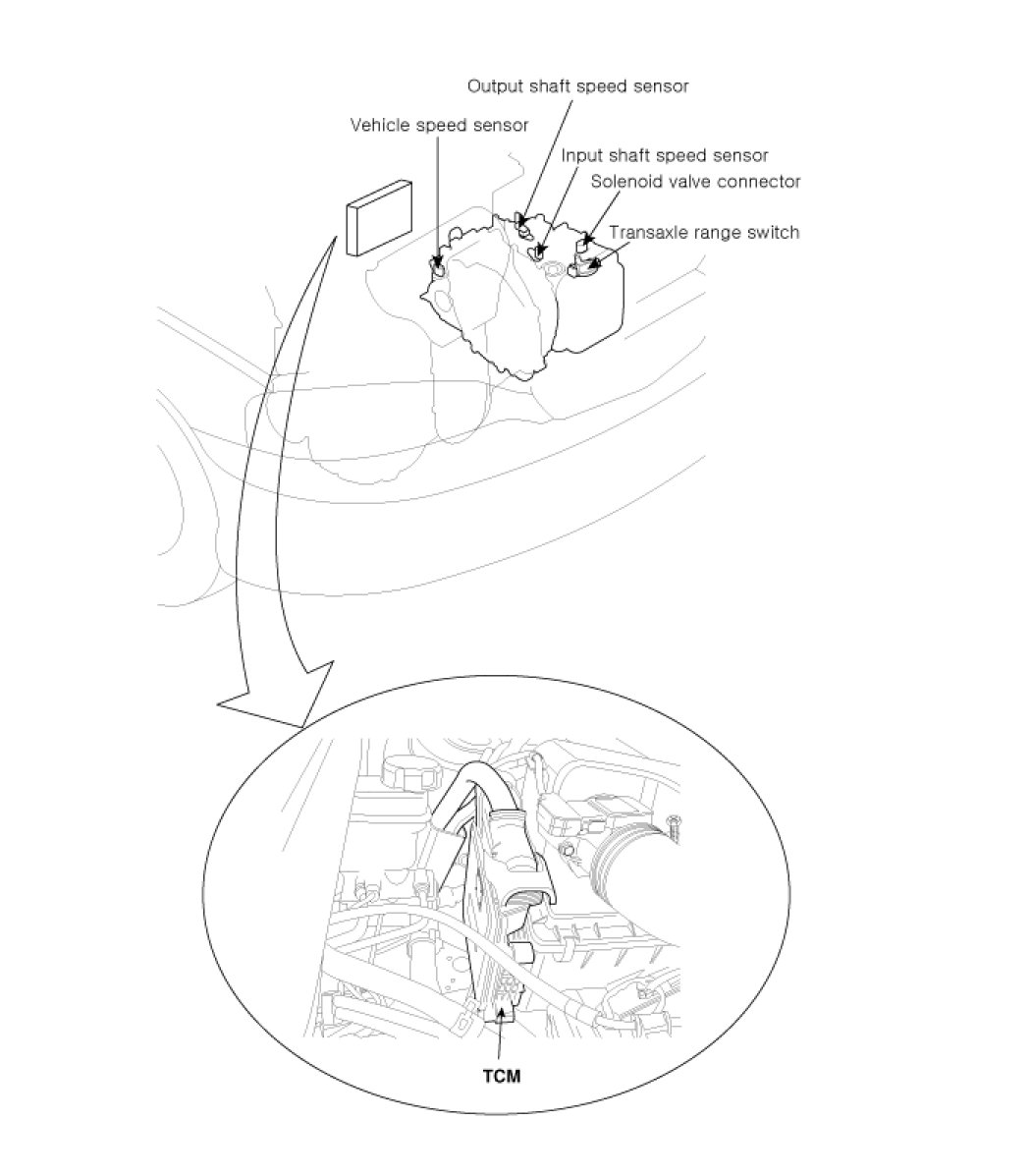Electric Control LocationThe TCM(PCM) is located on the intake manifold in the engine room.