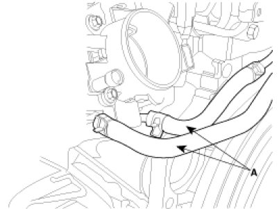 8. Remove the coolant hose (A) from the throttle body.