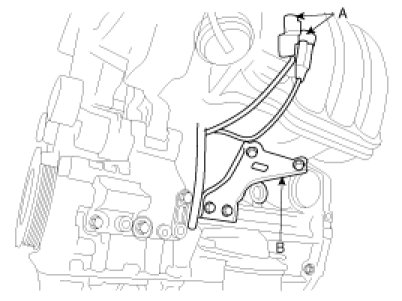 10. Remove the sensor connectors (A) from the bracket and then remove the intake manifold stay (B).