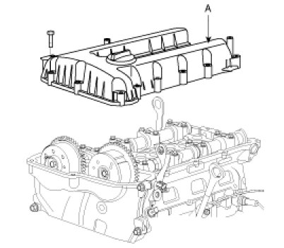 16. Remove the cylinder head cover (A).