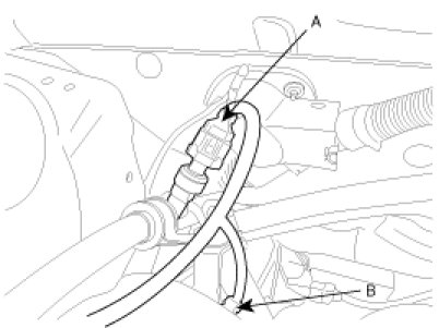 11. Disconnect the power steering oil pressure switch (A) and exhaust OCV connector (B).