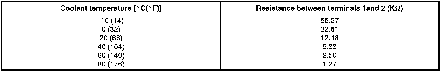 3. Using the multi-tester, Measure resistance between terminal "1" and "2" of water temperature sensor.
