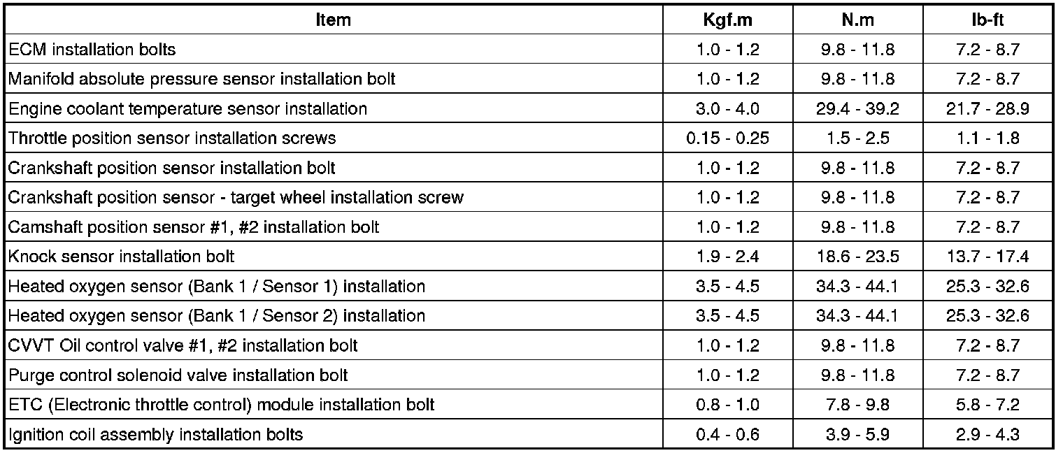 Tightening torques