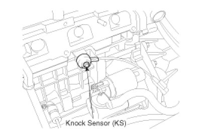 Knocking is a phenomenon characterized by undesirable engine detonation or pinging that can cause engine damage. Knock Sensor (KS) senses engine and cylinder block knocking. When knocking occurs, the vibration from the cylinder block is applied as pressure to the piezoelectric element. The sensor transfers the voltage signal higher than the specified value to the ECM and the ECM retards the ignition timing. If the knocking disappears after retarding the ignition timing, the ECM will advance the ignition timing. This sequential control can improve engine power, torque and fuel economy.