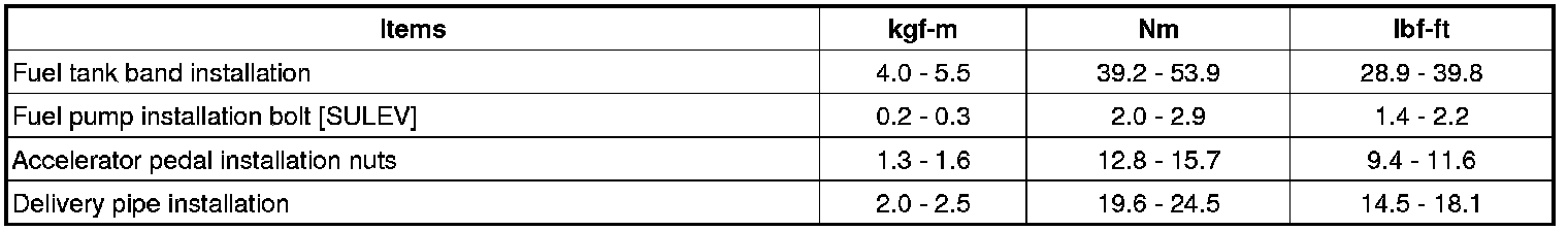 Tightening torques