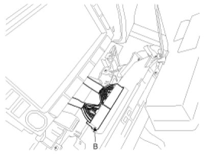 5. Disconnect the clock and heater control unit connector(B).