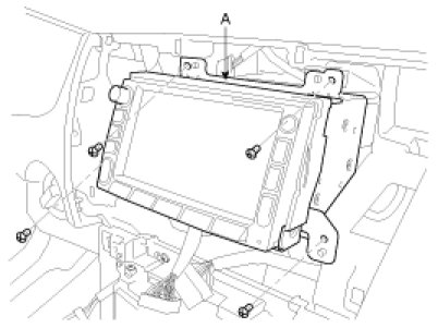 6. Remove the mounting screws then remove the navigation unit(A).