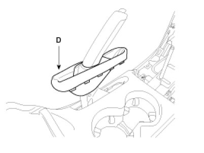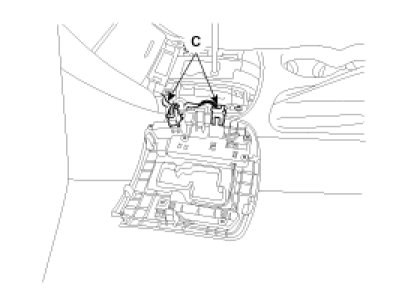 6. After loosening the console mounting screws, then remove the floor console assembly (E).