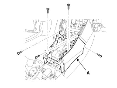 4. After loosening the mounting screw, then remove the center fascia lower panel (A).