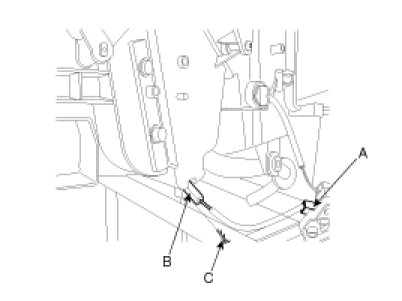 5. Pull the water temperature sensor(B) out at the heater unit with the stopper (C).