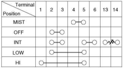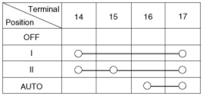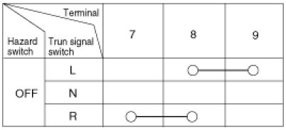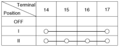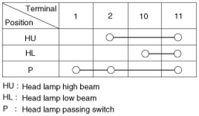 With the multi function switch in each position, make sure that continuity exists between the terminals below. If continuity is not as specified, replace the multi-function switch.