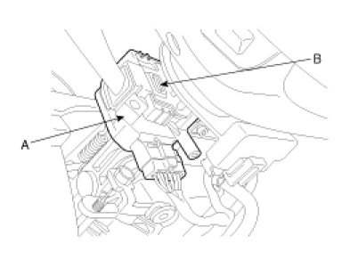 4. Remove the wiper switch (A) by pushing the lock pin (B) after disconnecting the connector.