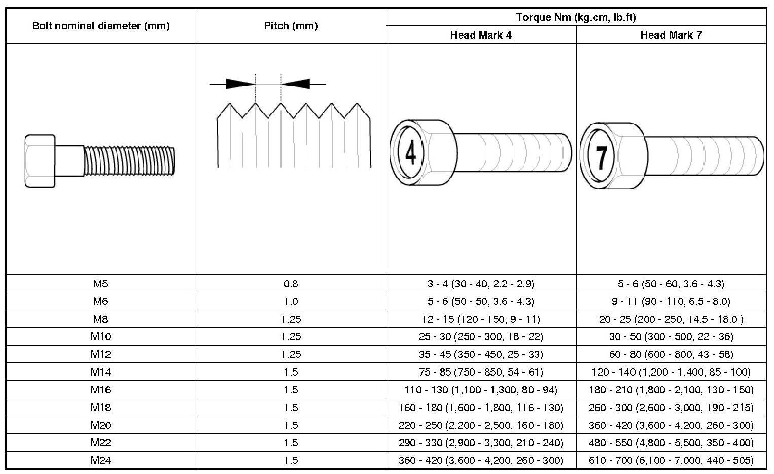 Tightening Torque Table Of Standard Parts
