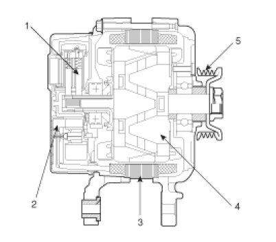 The main components of the alternator are the rotor, stator, rectifier, capacitor brushes, bearings and V-ribbed belt pulley. The brush holder contains a built-in electronic voltage regulator.