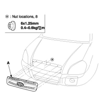 Remove the radiator grille (A).