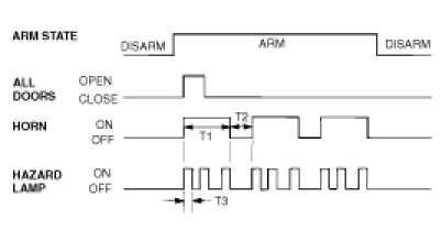 On entering the arm state, a single flash of the hazard lamps is given,period of cycle 2 second, duty rate 50%.