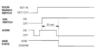 After the alarm state or start inhibit state are entered, if door warning switch on (key in ignition) &IGN 2 ON, if IGN 2 state is changed to OFF within 30sec., remain in alarm state.
