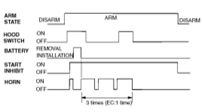 This system enters the armed state if it is in the pre-armed state and,after 0.6 sec, check actuator lock and each door, hood and tailgate close,and no door warning switch (no key in ignition).