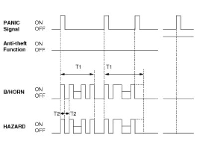 (1) If the transmitter's PANIC alarm signal is detected, during T1, using the burglar alarm horn or HAZARD, the PANIC alarm is ON.