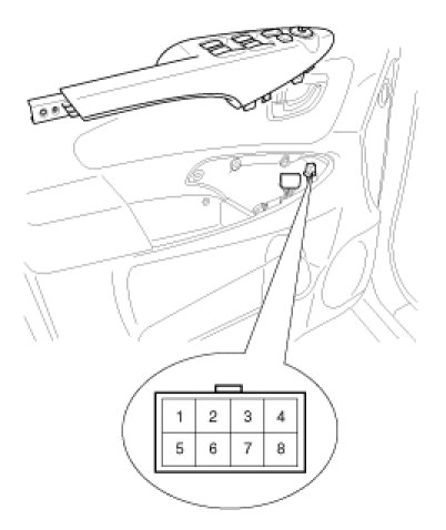 Disconnect the 8P connector from the power door mirror switch.