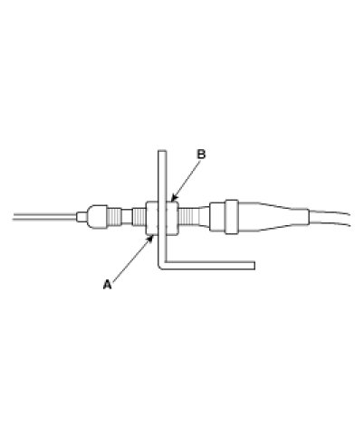 5. Turn the adjusting nut (A) until it is 3.75±0.5 mm (0.15±0.02 in.) away from the bracket (B).