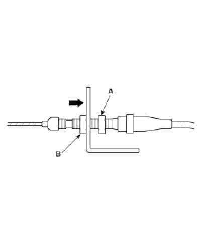 6. Pull the cable so that the adjusting nut (A) touches the bracket, and tighten the locknut (B).