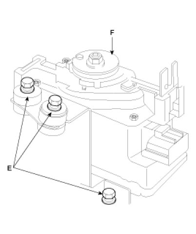 3. Loosen the three mounting bolts(E), and remove the actuator(F) with the bracket.