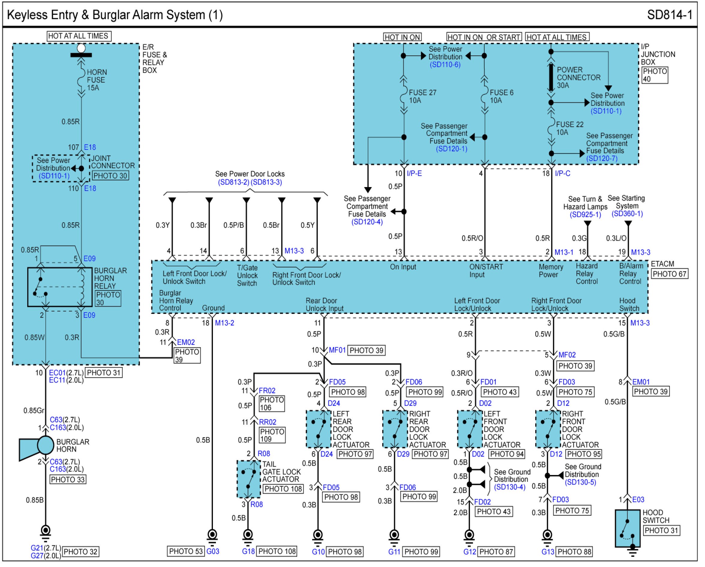 Locations: Location photographs (references to PHOTOS) referred to within these diagrams can be found via the photo number at the vehicle level under Locations by Photo Number. Component Locations
