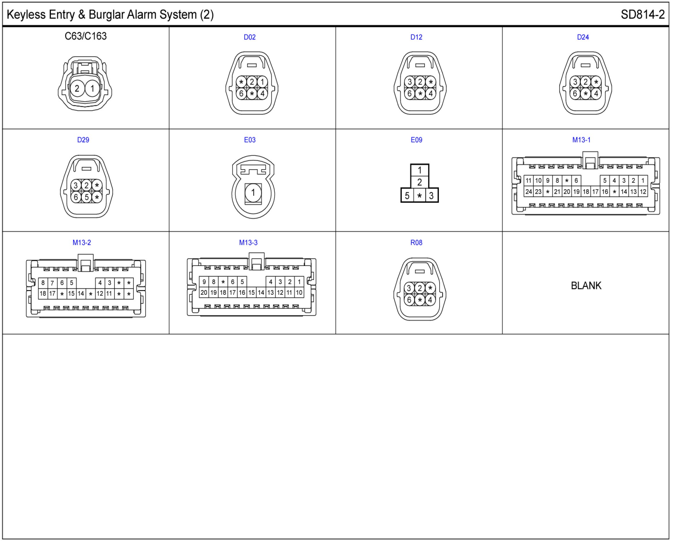 Keyless Entry & Burglar Alarm System Connector Pin Outs: