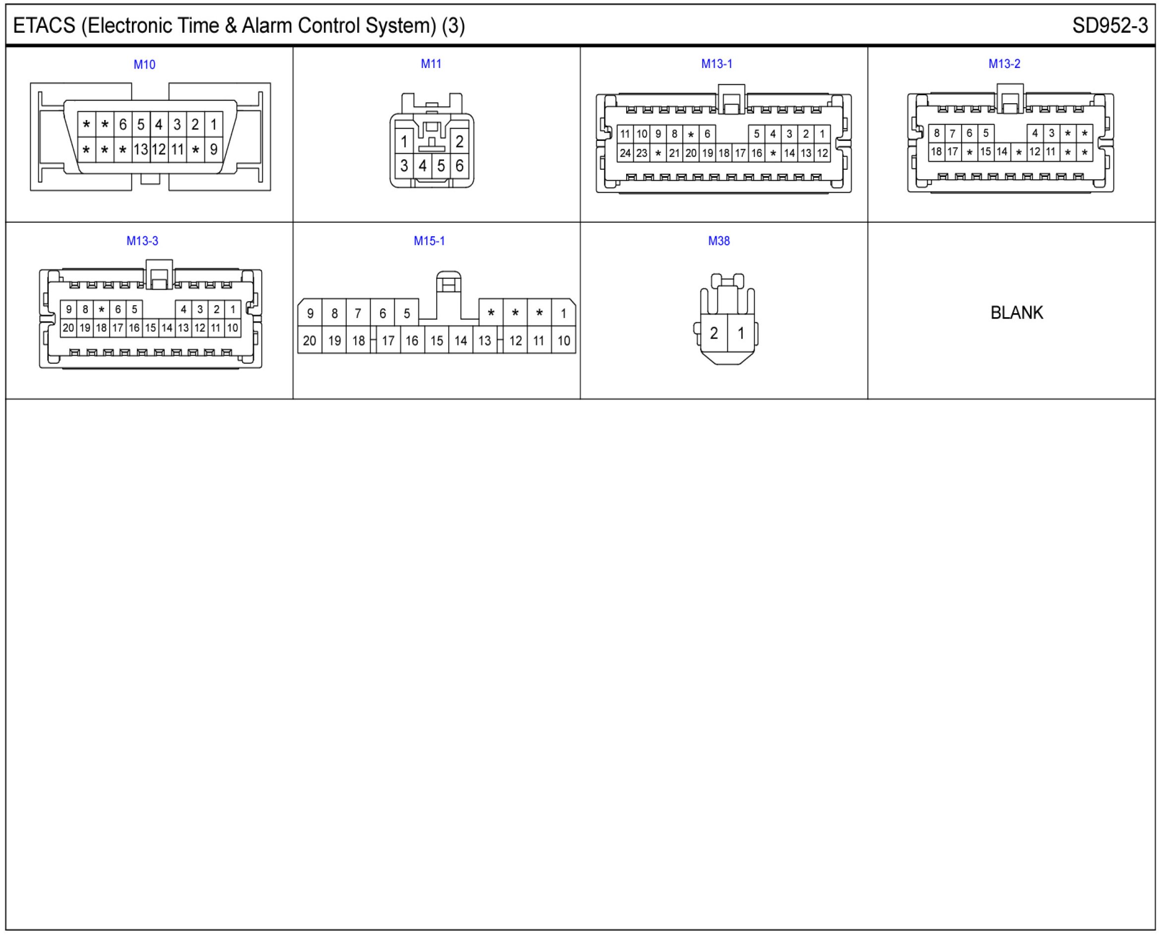 ETACS (Electronic Time & Alarm Control System) Connector Pin Outs: