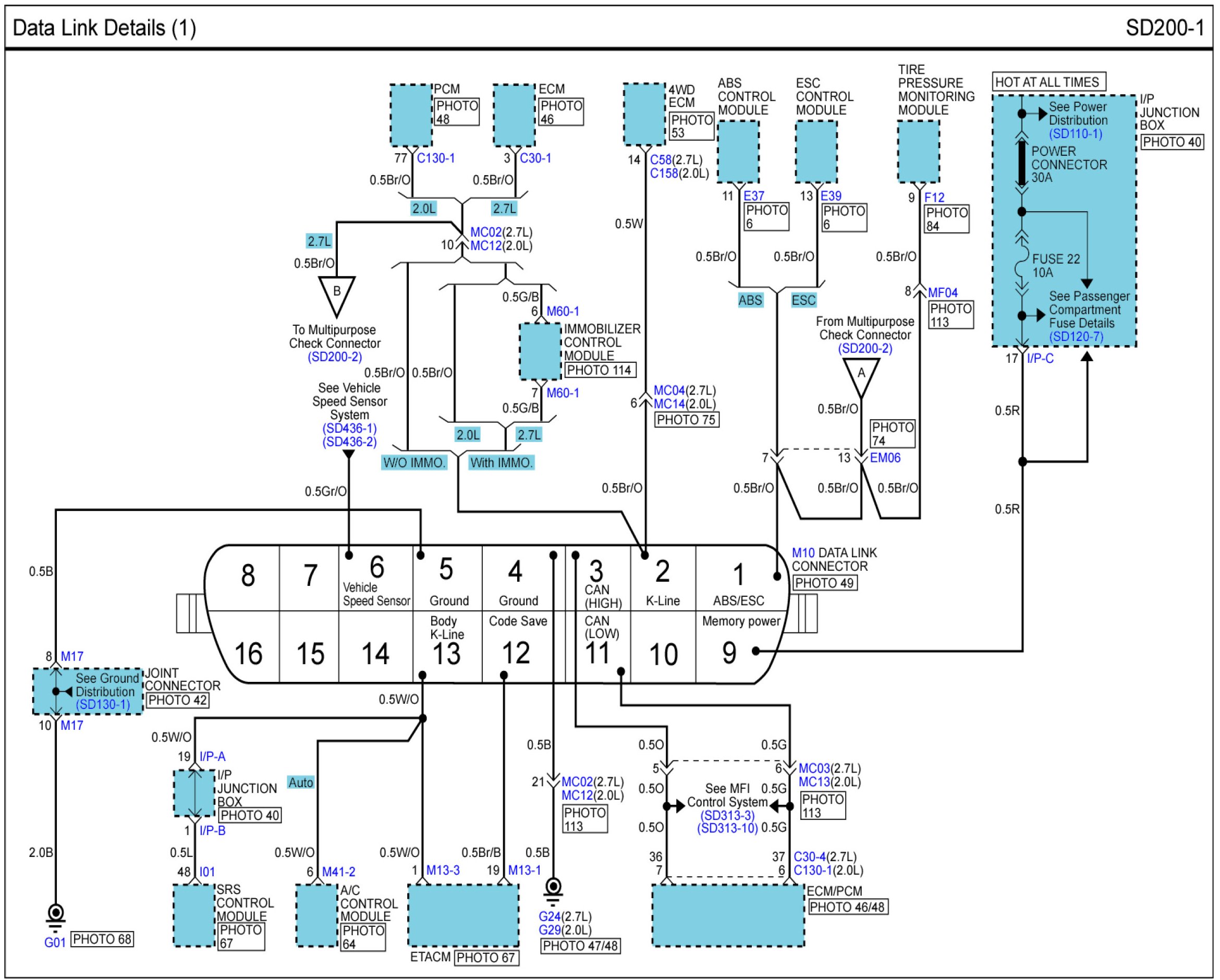 Locations: Location photographs (references to PHOTOS) referred to within these diagrams can be found via the photo number at the vehicle level under Locations by Photo Number. Component Locations