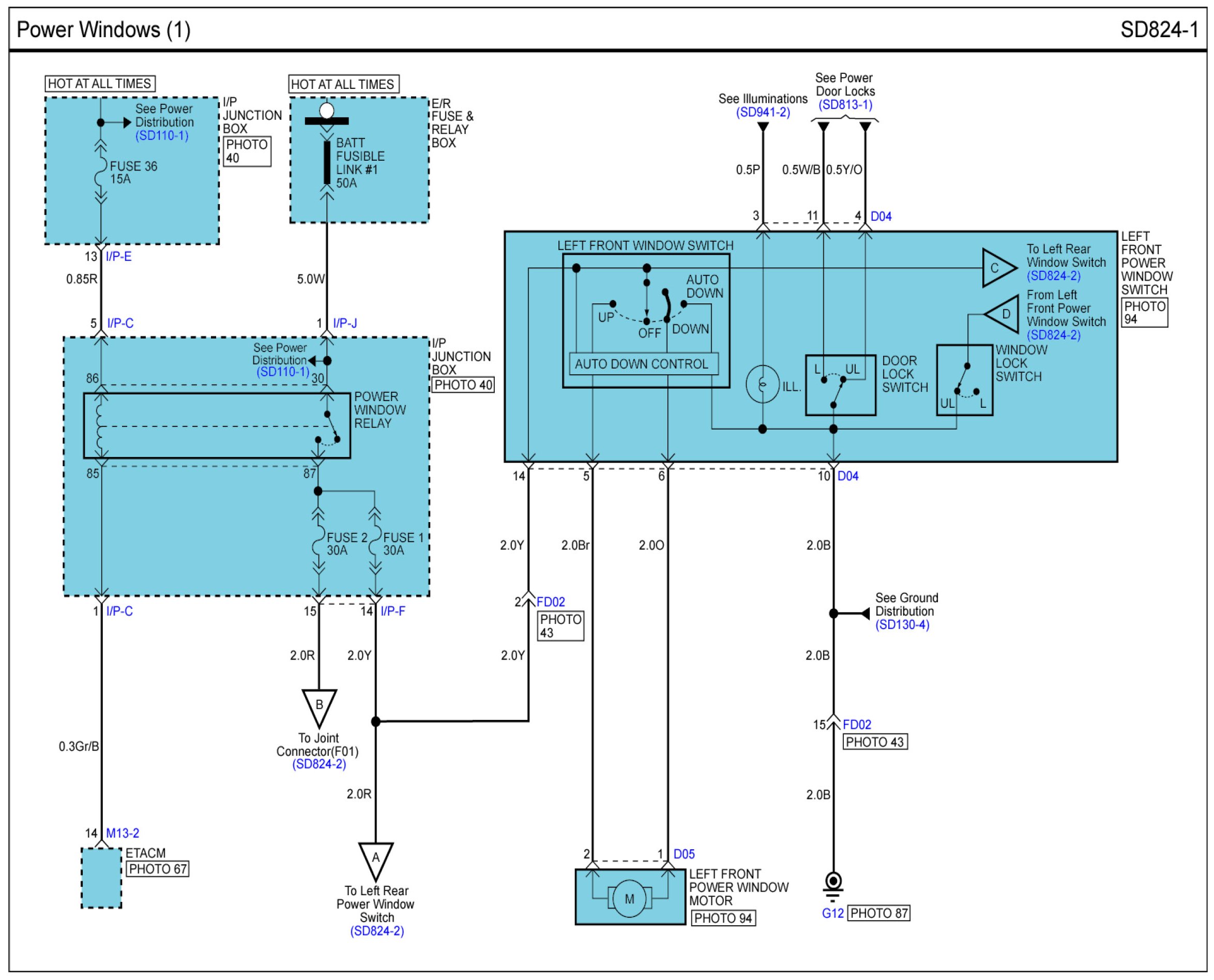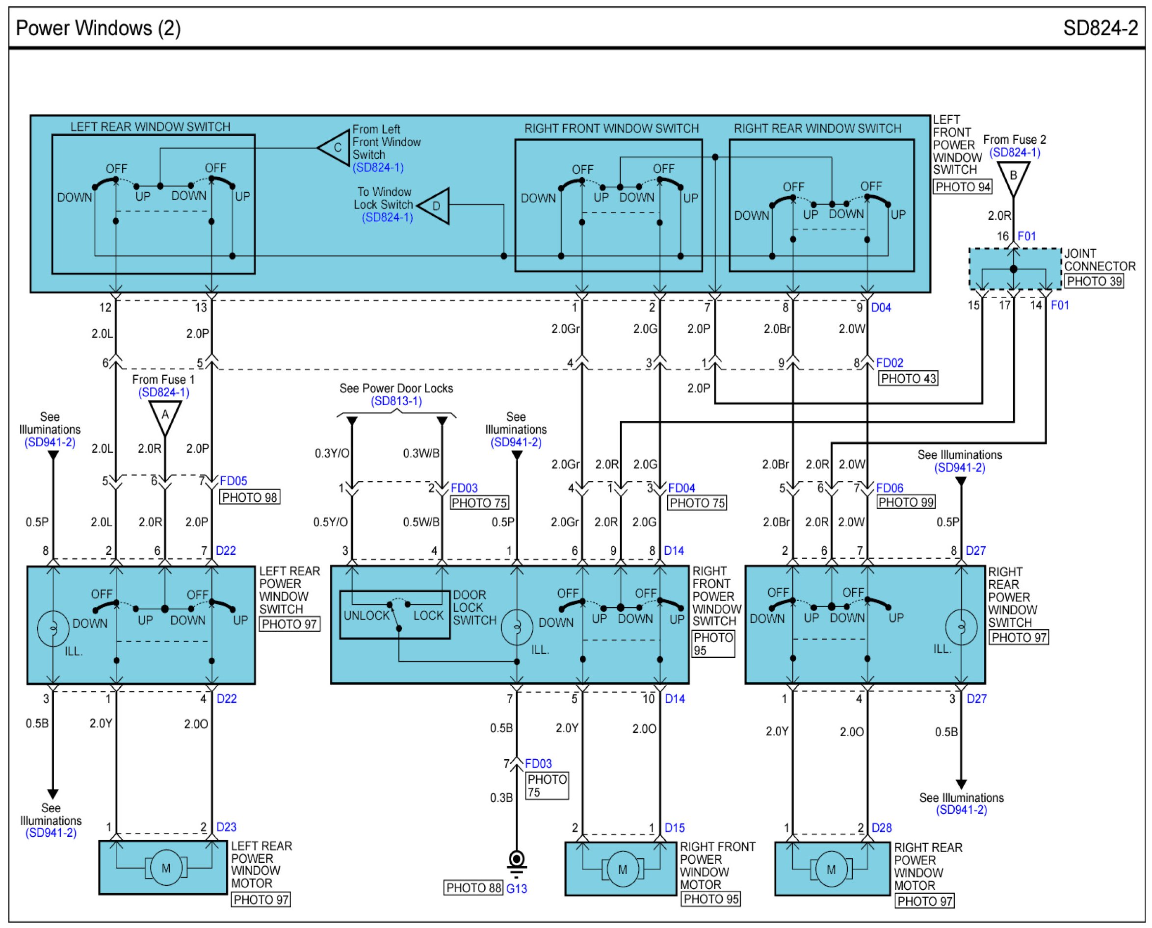 Power Windows Connector Pin Outs: