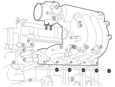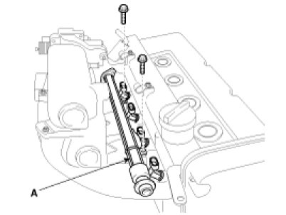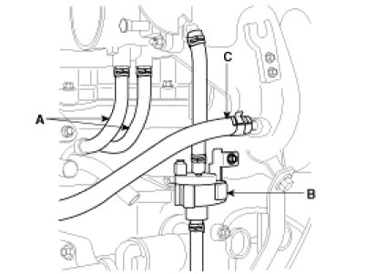 6. Remove the heater hoses(A), PCSV(B), and brake vacuum hose(C).