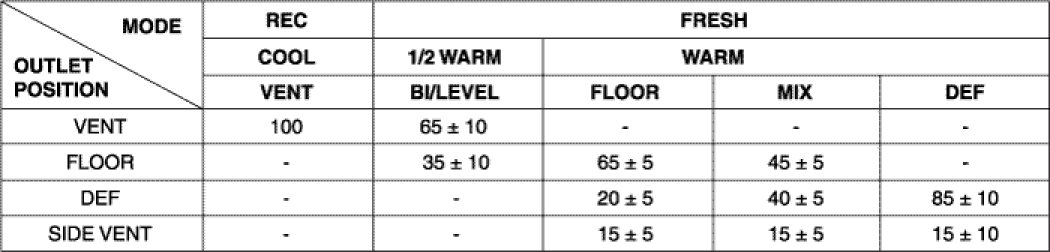 AIR FLOW DISTRIBUTION OF MODE (%)