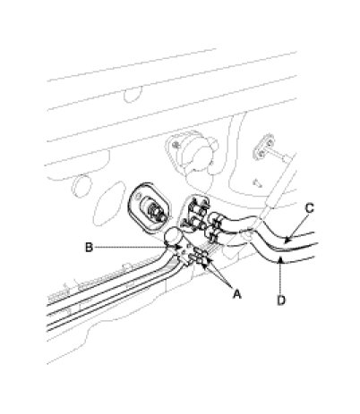 5. Disconnect the inlet(C) and outlet(D) heater hoses from the heater unit.