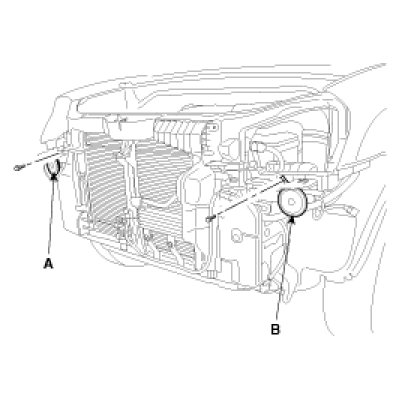 Remove the horns(Low : A, High : B) assembly after removing a bolt, then disconnect the 2P connector.