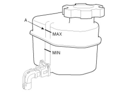 1. Make sure the brake fluid in the reservoir is at the MAX (upper) level line (A).