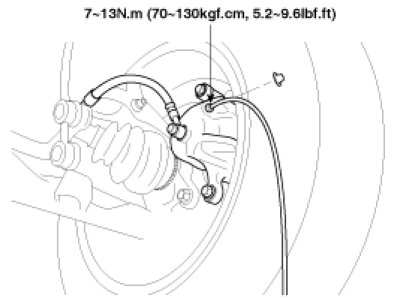 3. Loosen the right-rear brake bleed screw to allow air to escape from the system. Then tighten the bleed screw securely.