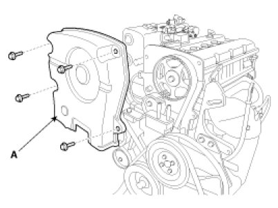 2. Remove the 4bolts and timing belt upper cover (A).