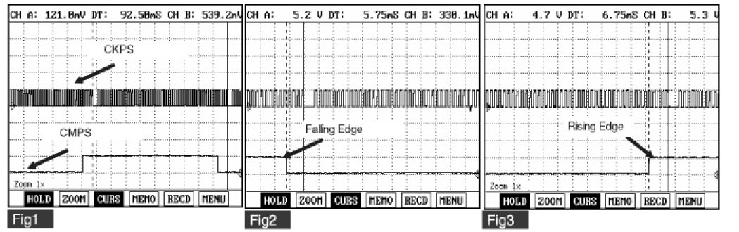 Fig.2,3)The CMPS falling(rising) edge is coincided with 3 - 5 tooth of the CKP from one longer signal(missing tooth)