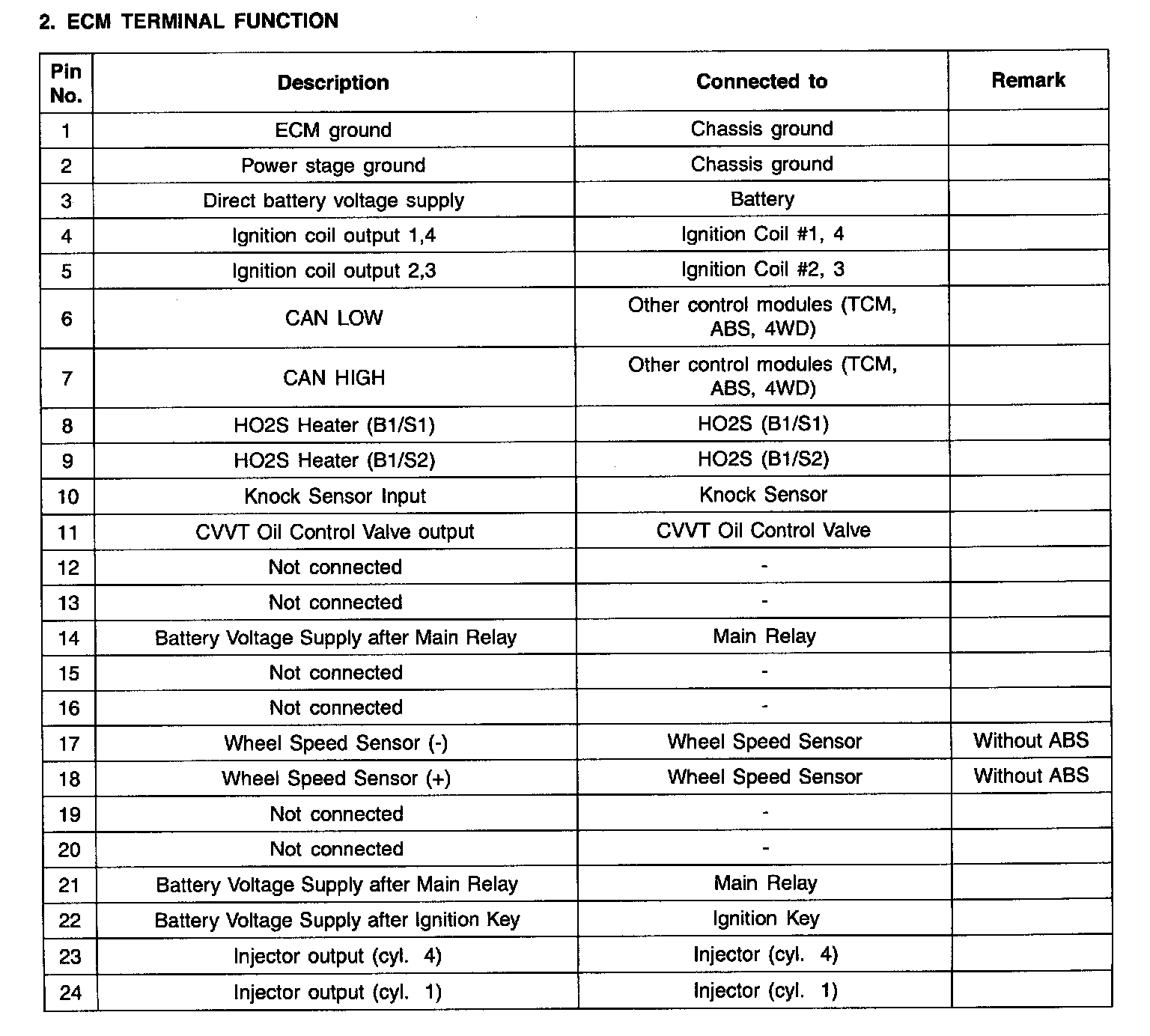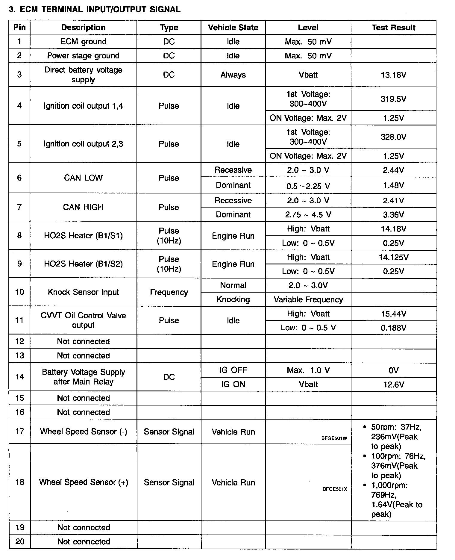 ECM TERMINAL INPUT/OUTPUT SIGNAL