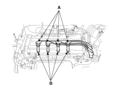 3. Inspect the electrodes(A) and ceramic insulator(B).