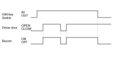(2) Buzzer stops sounding if IGN KEY switch =OUT or Driver DOOR=CLOSE are met during CHIME BUZZER output.