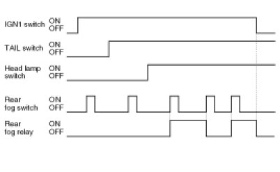 (3) REAR FOG RELAY is turned OFF unless the condition "IGN1=ON & TAIL switch =ON & HEAD LAMP switch = ON (and FRONT FOG switch=ON)" is met.
