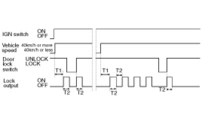 (2) LOCK signal is output if vehicle speed is 40km/h or more for at least 1sec under ALT"L" ON, IGN switch = ON. But, LOCK signal is not output if all Door's are locked or all Door's are FAIL in advance.