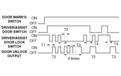 (2) ALL DOOR UNLOCK signals are output for T2 after T1 from when the state becomes IGN KEY switch = IN & DOOR = OPEN & DOOR LOCK switch = LOCK.