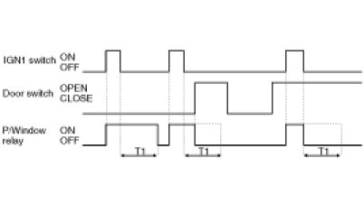 (3) POWER WINDOW RELAY is immediately turned OFF if DOOR is opened under POWER WINDOW RELAY ON for T1.